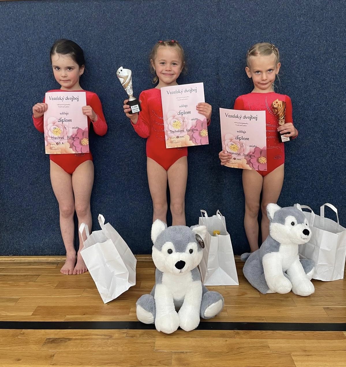 V sobotu 21.3.2026 se naše nejmenší gymnastky zúčastnily dvojboje ve Veselí nad Lužnicí a byly úspěšné!